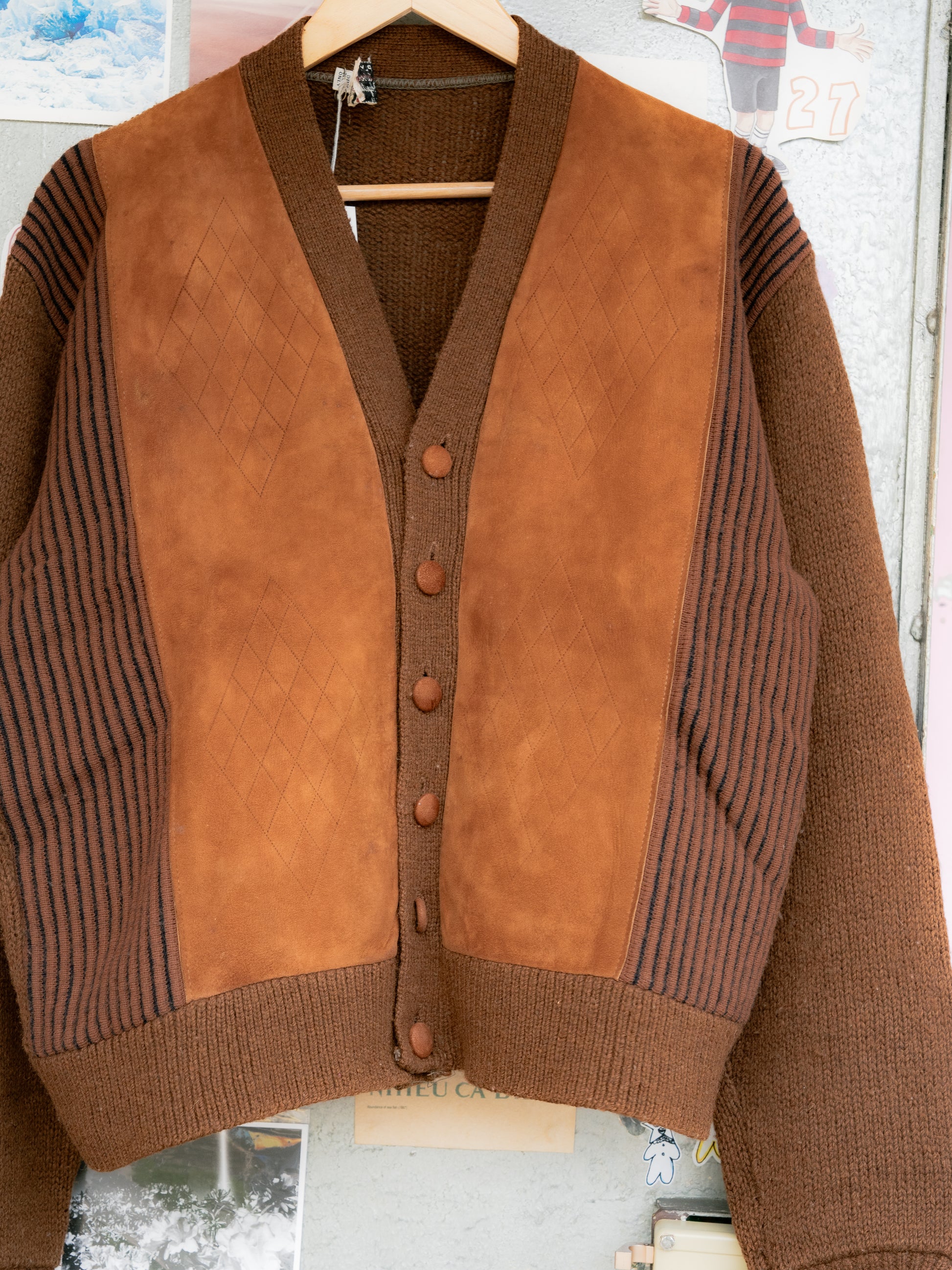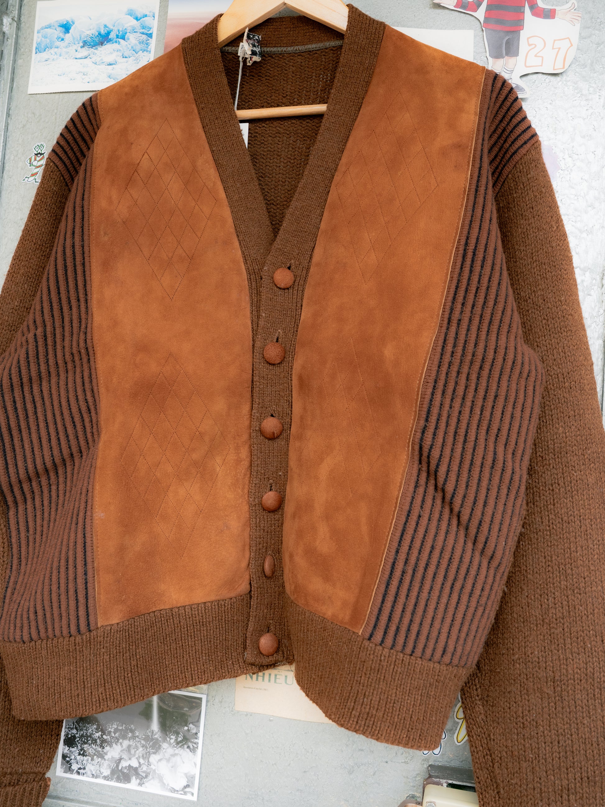 1960-70s Suede Wool Mix Cardigan